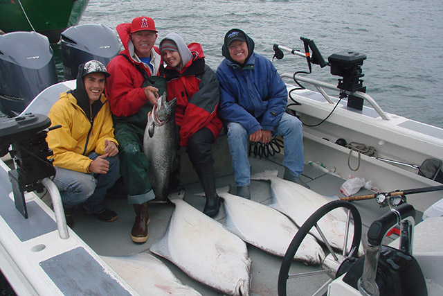Unless you opt out, we also include one goverment-issued tag per angler in our fishing packages for a halibut wihout any size restriction. Each tag is valid for a single fish and does not count against your regular charter limit. Face it, anglers come to Alaska to catch their dream halibut- which means BIG! Since our fishing grounds are pretty much touted as the best in Alaska for giants, we figure you might as well take advantage of it. Most halibut kept via a tag range from 80 and 150 pounds, and you call the shot.
